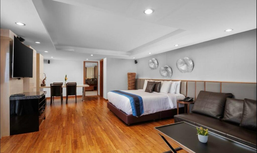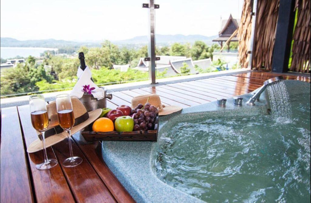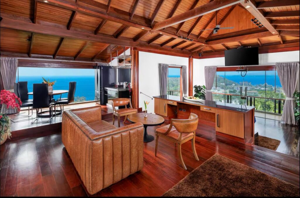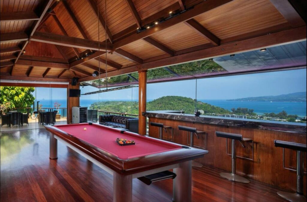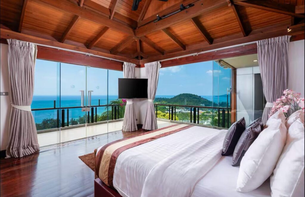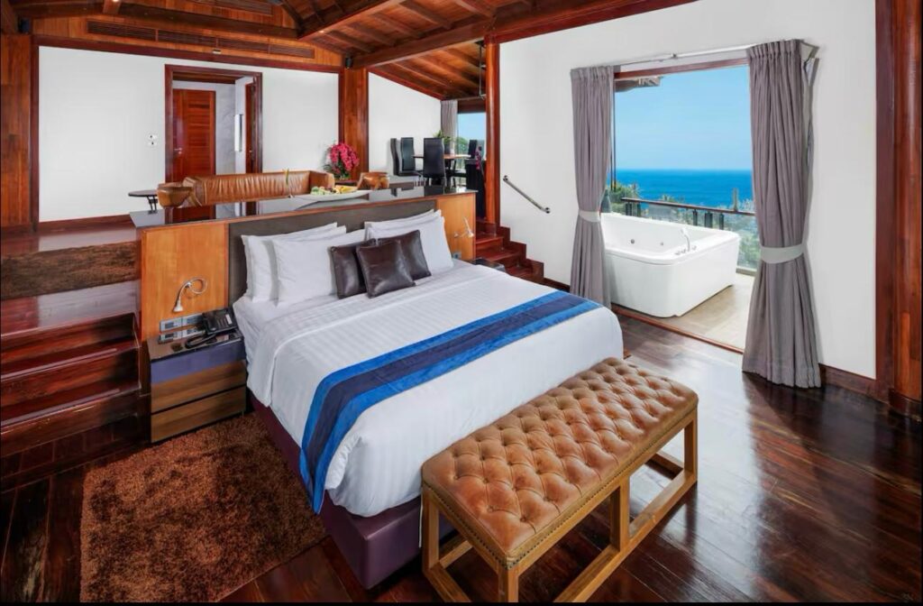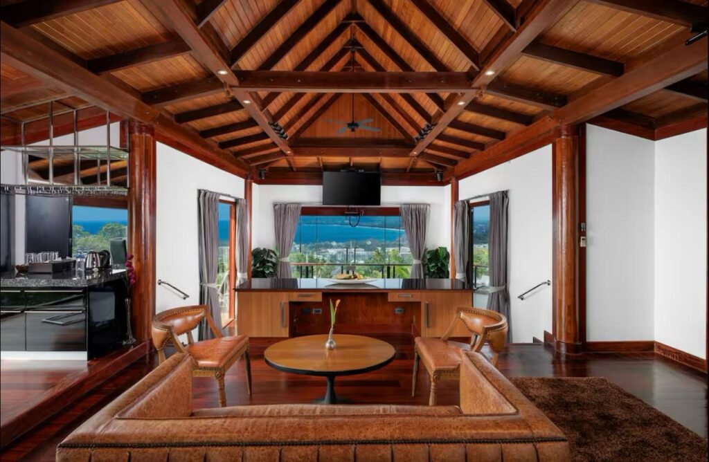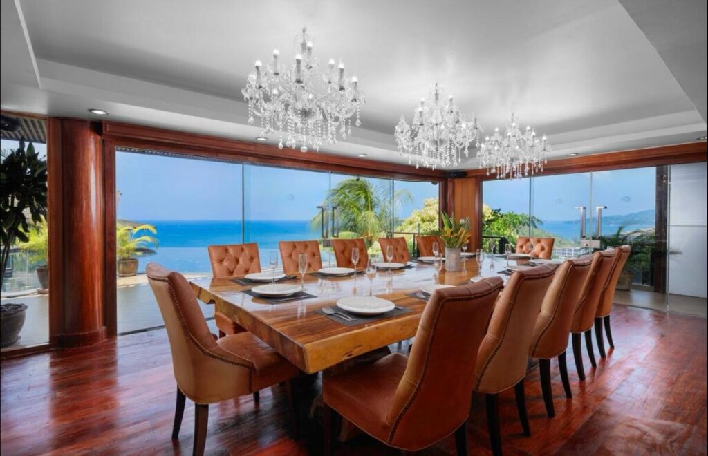 The villa includes six suite-style bedrooms with ocean views, each offering steam showers, double Jacuzzi tubs with UHD TVs, private heated pools, minibars, JBL sound systems, and more. Master Suites add 8-person Jacuzzis and private Thai gardens. All rooms feature outdoor bathtubs and panoramic views of Phuket’s three best beaches.